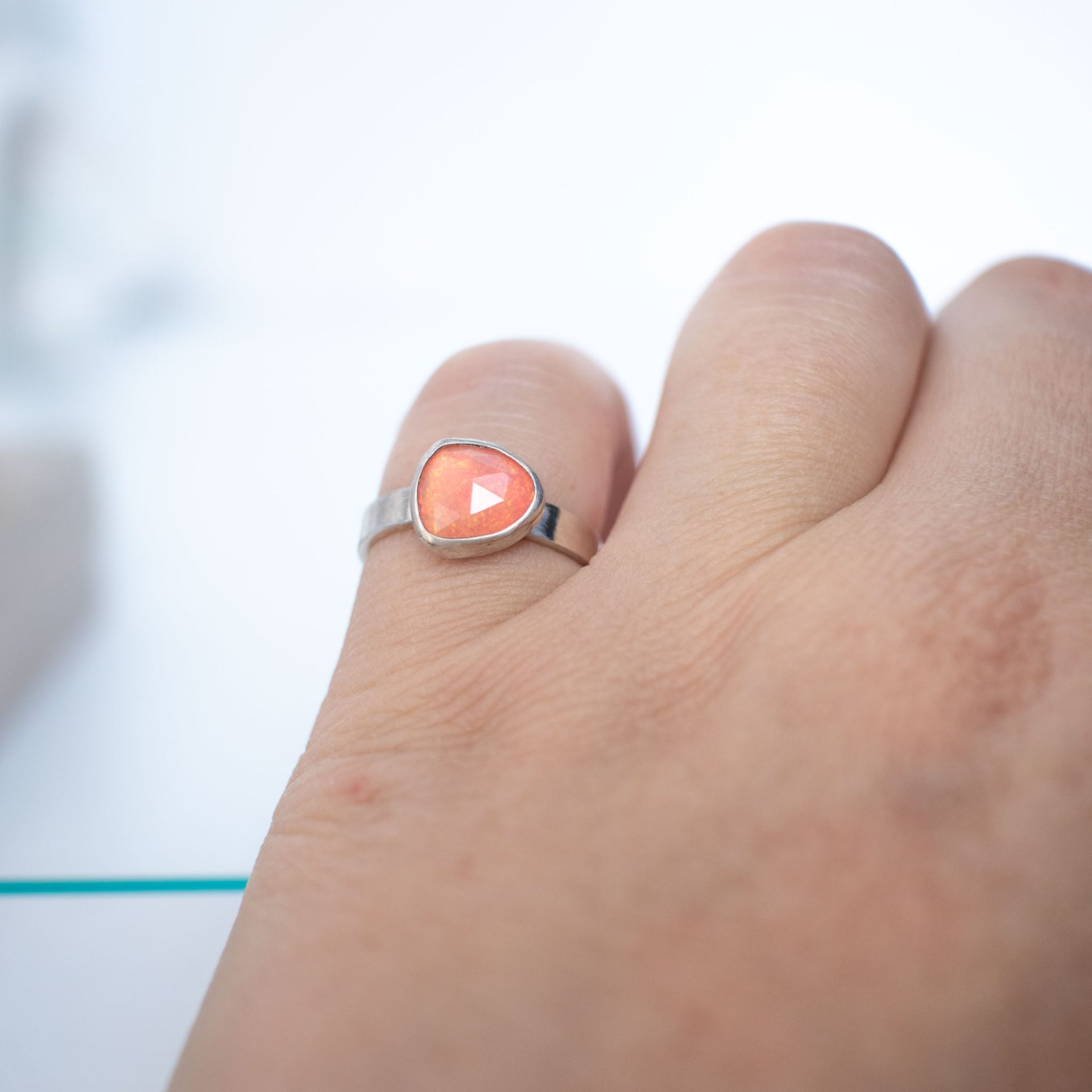 Beautiful Ethiopian opal pink ring made out of Solid Sterling Silver comes in size 5.5.