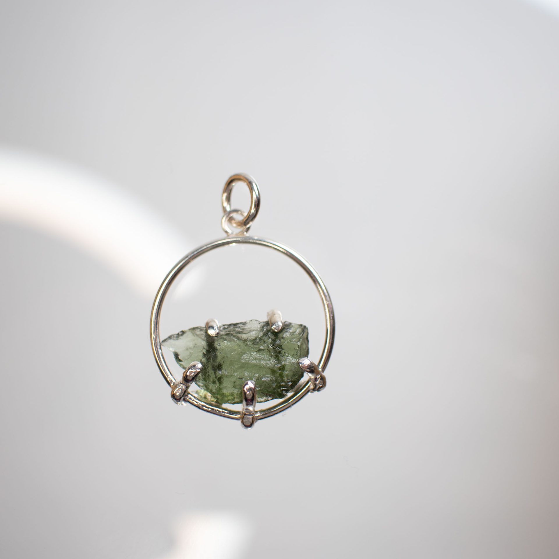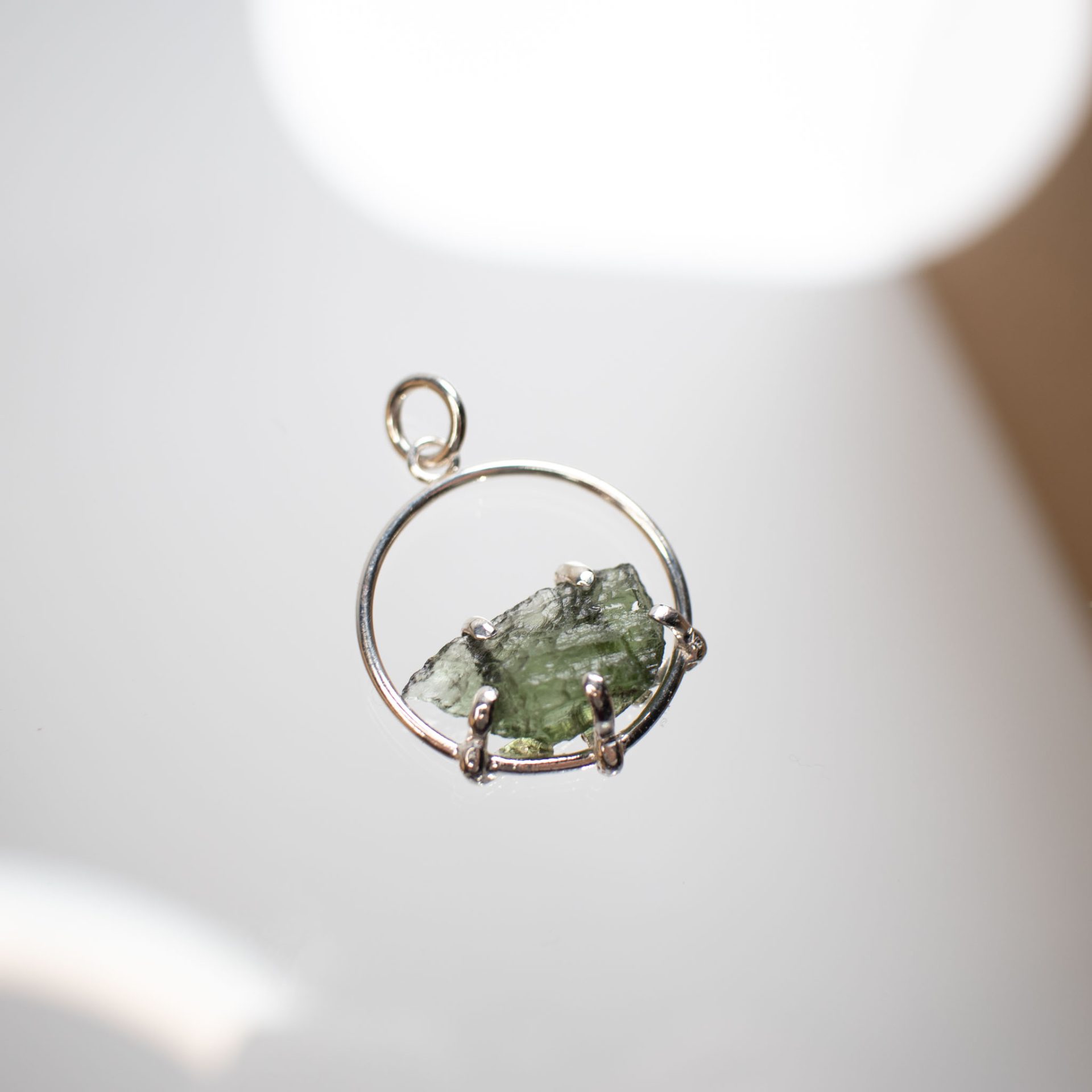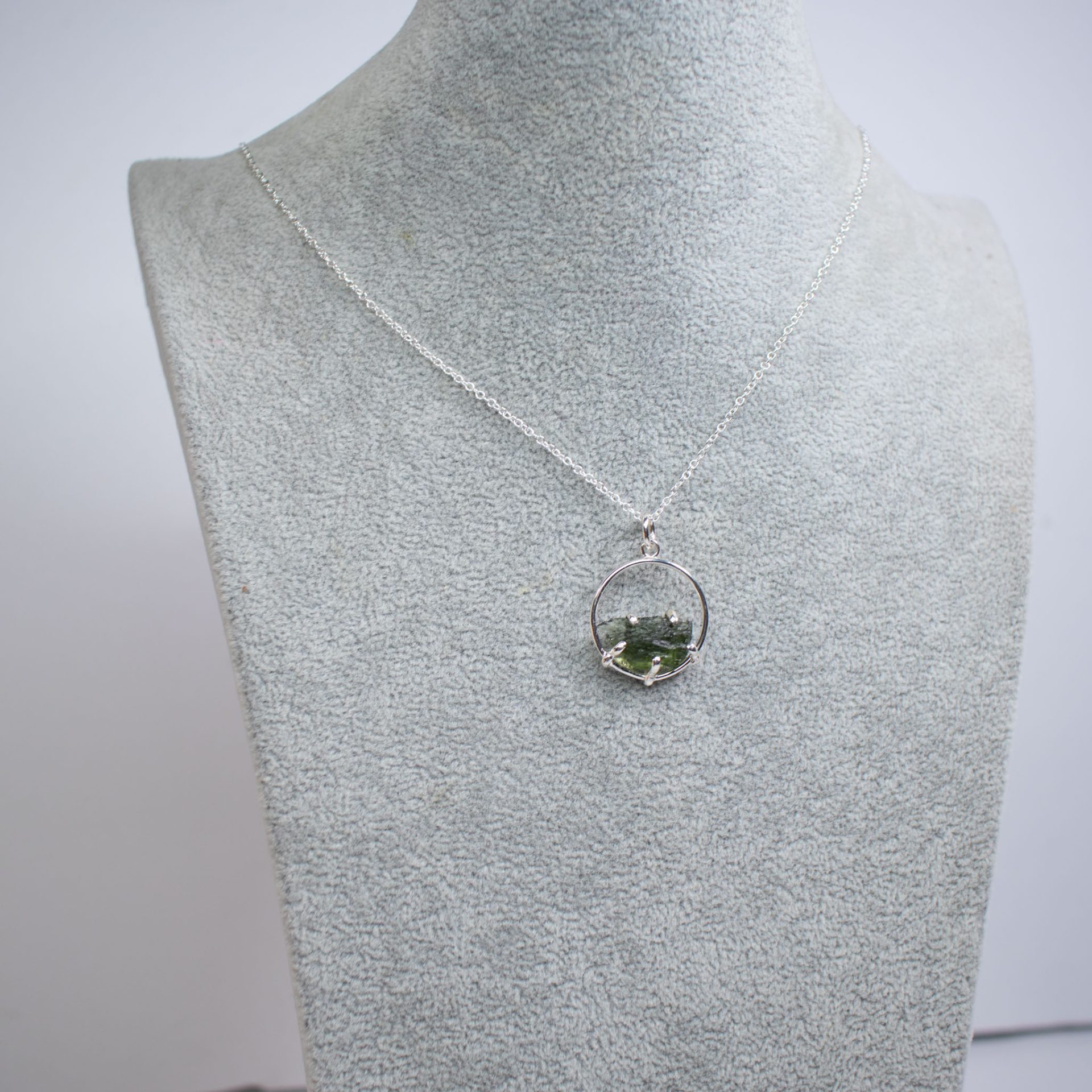 Minimalistic one-of-a-kind design Moldavite crystal around 1,5 – 2 grams made out of Sterling Silver.