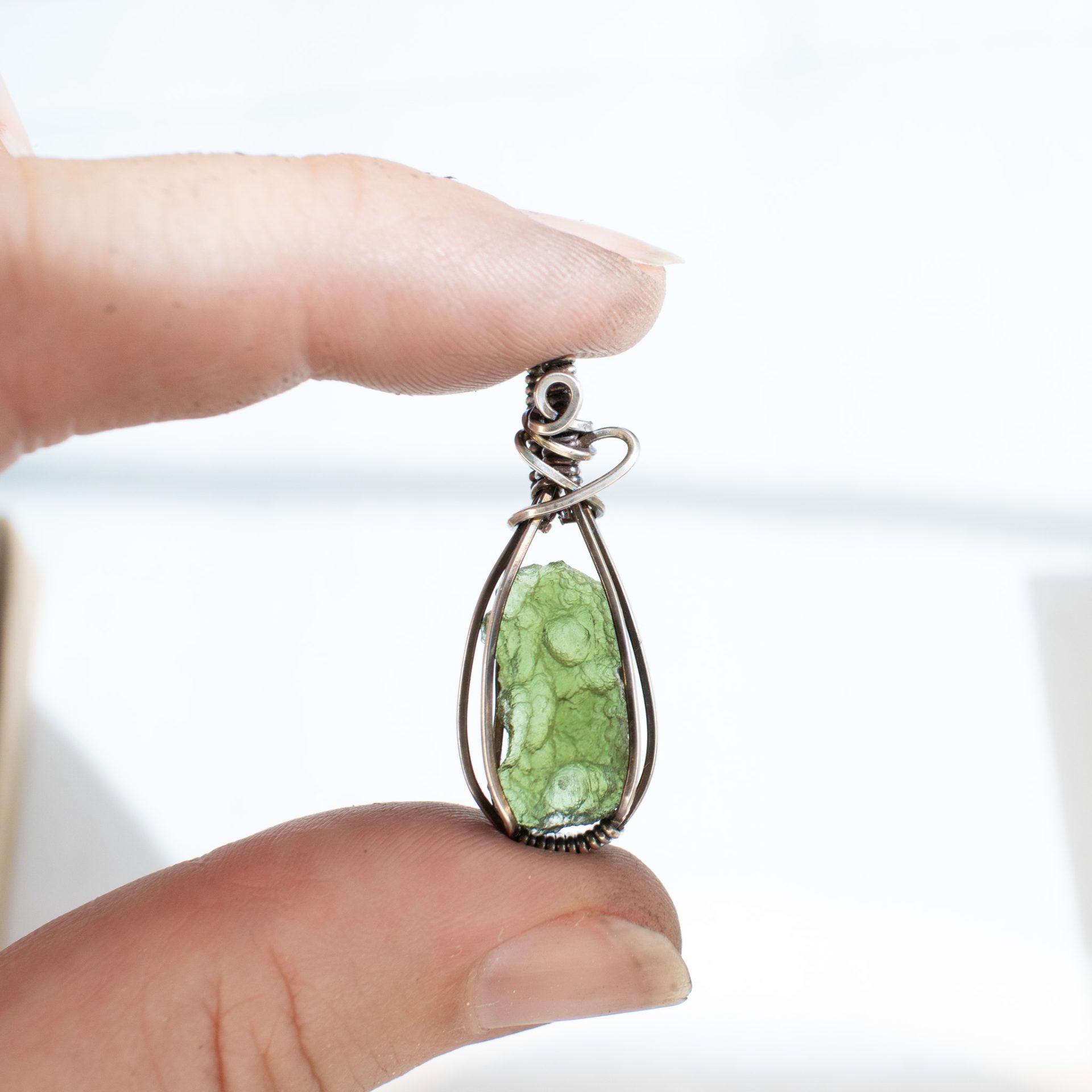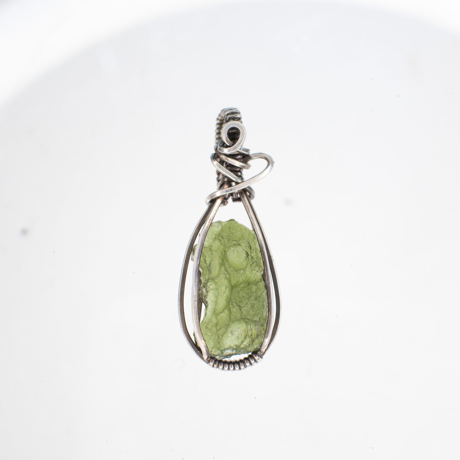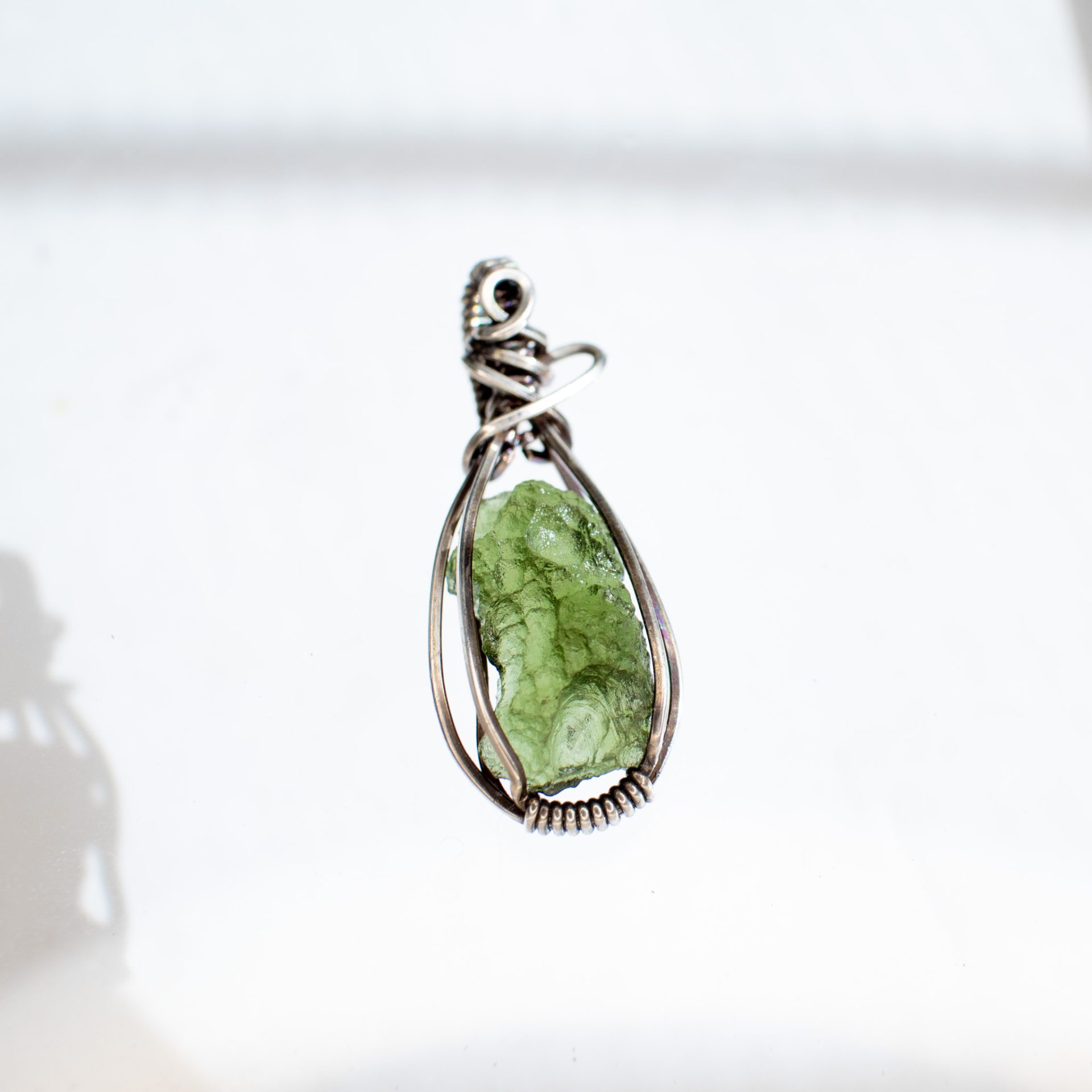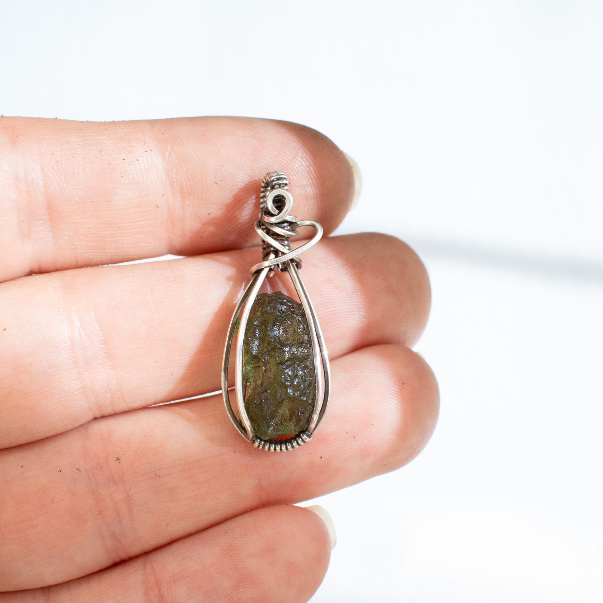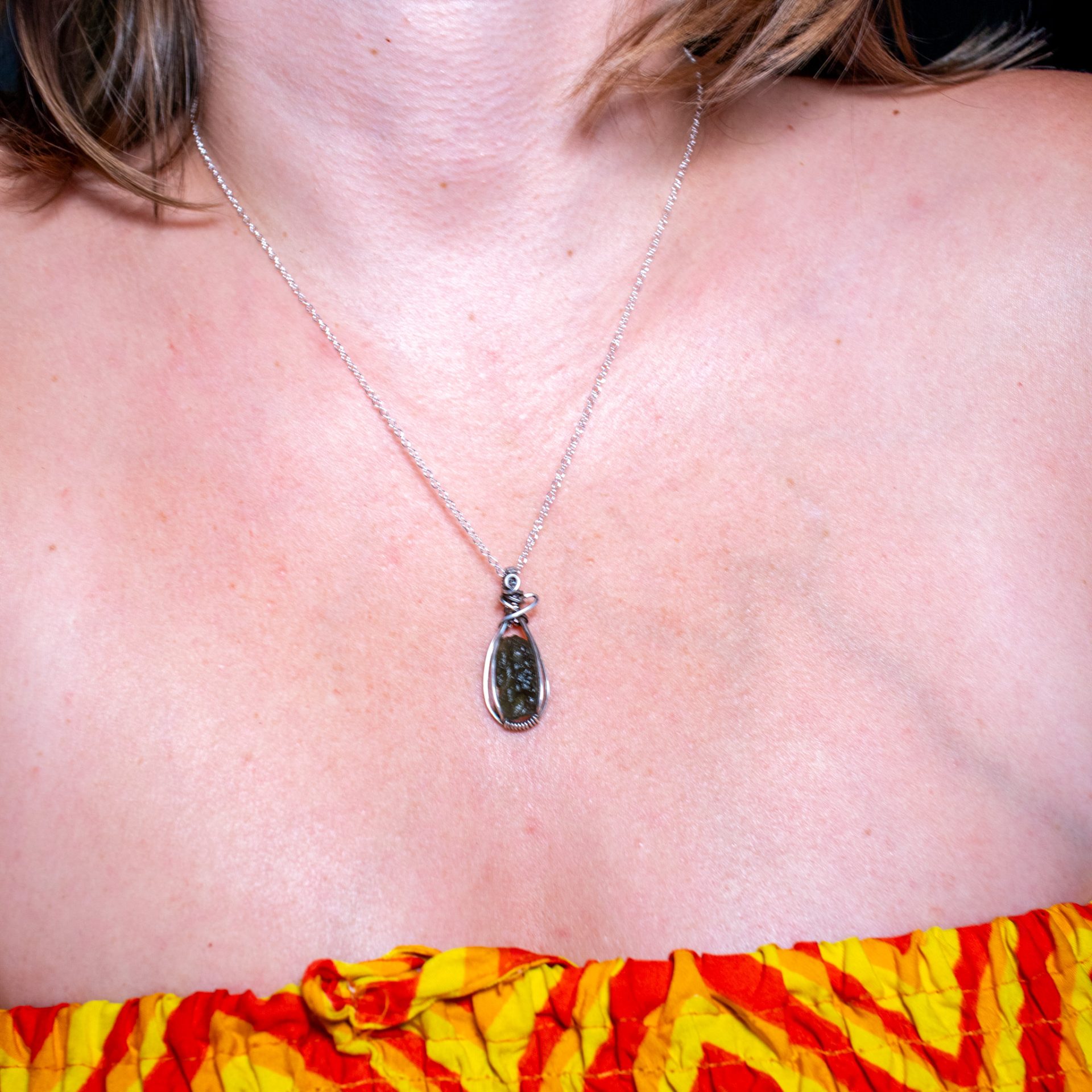 Moldavite necklace is wrapped by hand using a Sterling Silver wire and comes with a silver chain 18″.