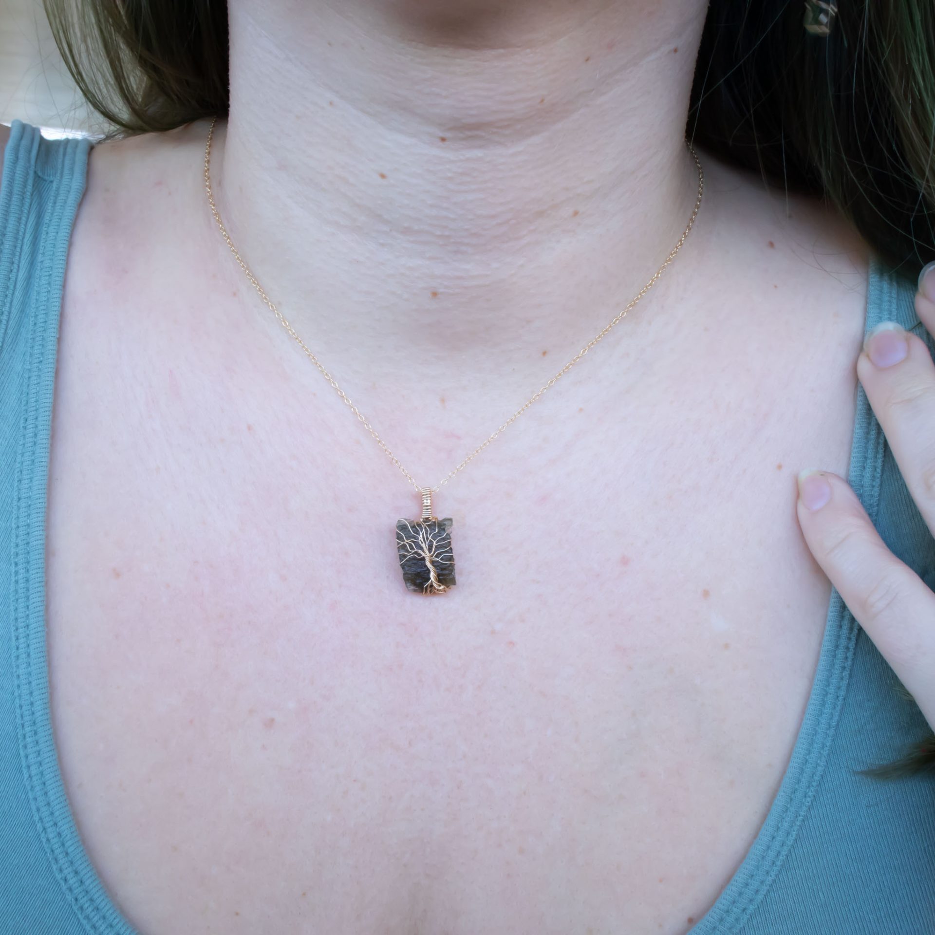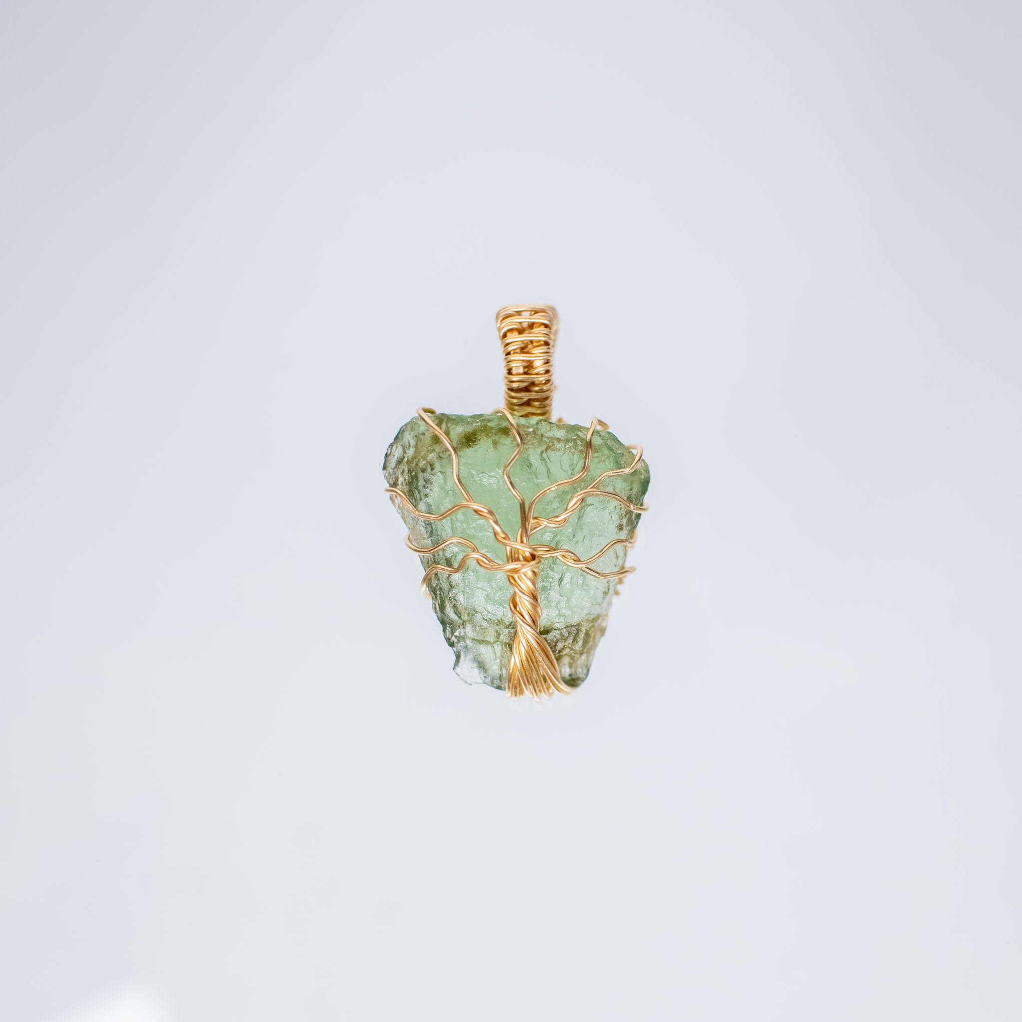 The Moldavite Tree of Life pendant features a Moldavite crystal of 1.5-2 grams.